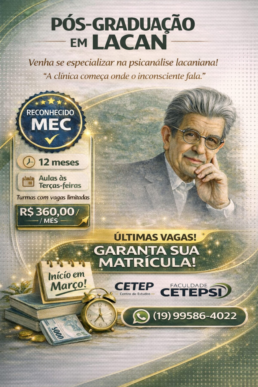 O CETEP é a maior escola de psicanálise do Brasil, formando psicanalistas e terapeutas preparados para a prática clínica. Fundado em 2014, conta com mais de 5.000 alunos ativos e 40 polos espalhados pelo país, além de uma sede imponente em Campinas, com 5 andares, anfiteatro, salas de aula modernas e consultórios equipados.