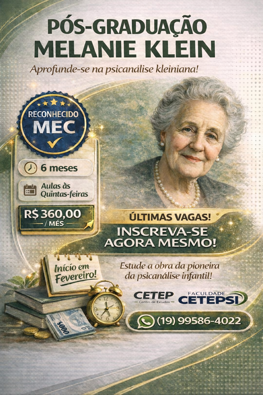 Nossa pós-graduação oferece um percurso sólido e qualificado na psicanálise kleiniana, ideal para quem deseja ampliar sua escuta clínica e fundamentação teórica.